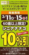 ヨークマート 草加店シニアナナコ10%引!3月11日(水)から15日(日)までの期間シニアナナコをレジにかざすだけ!期間中1回限り...