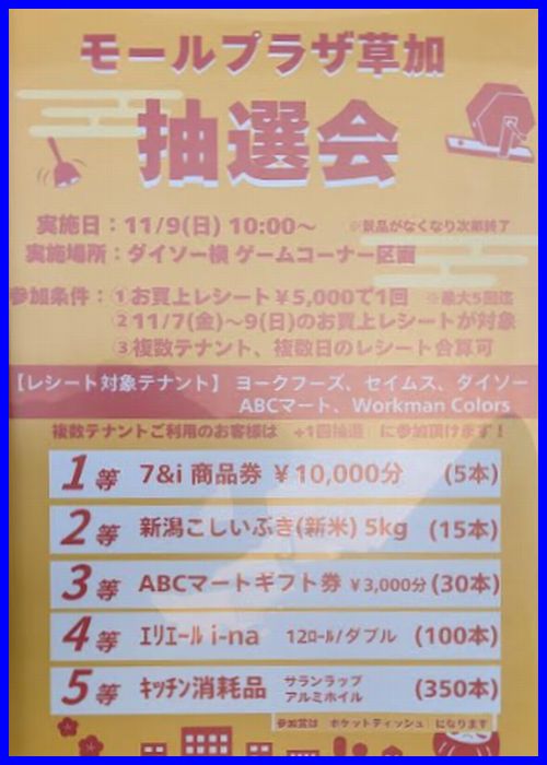 対象期間のお買上レシート合計5,000円(税込)ごとに