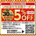 12月30日(火)限り 何回でも使える! Line5%OFFクーポン! 12月29日(月)よる8時に配信されます。 LINE友だち登録がまだの方は ぜひ、この